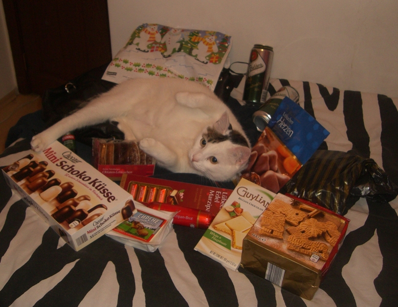 3 Paket kurabiye. Soldaki ve ortadaki Alman yılbaşı kurabiyeleri. En sağdakiler Kanada standından alındı. Daha eve gelmeden parçalanmış. Bu yüzden açıp tadına bakayım dedim hemen. Bayat ötesi! Kazıkladın bizi Kanada! Alman'ın gözünü yiyim!